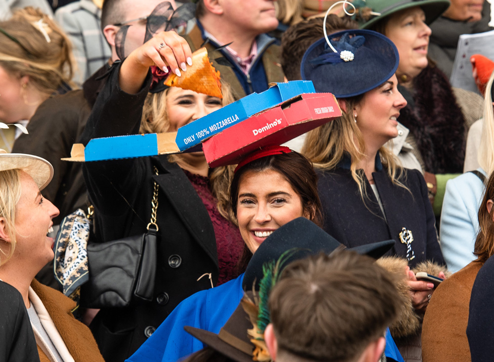 One of the UK’s most stuffy horse racing events - Cheltenham Ladies Day - famous for it’s fashionable headwear and posh grub. Not a Domino’s pizza in sight. Until now...