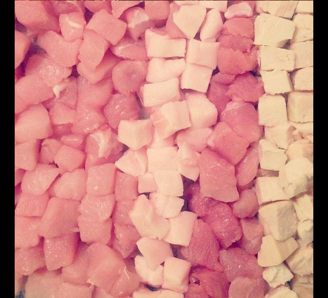The resulting artwork was arranged from 818 pixels of 12 varieties of meat.