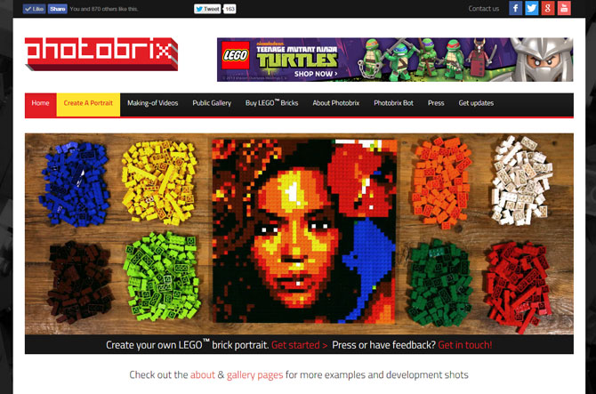 Photobrix is an automated Lego mosaic generator. Upload an image, convert it to Lego bricks and get the exact instructions of how to build it. The website calculates the most efficient way for you to build it too, using the biggest bricks possible where it can.