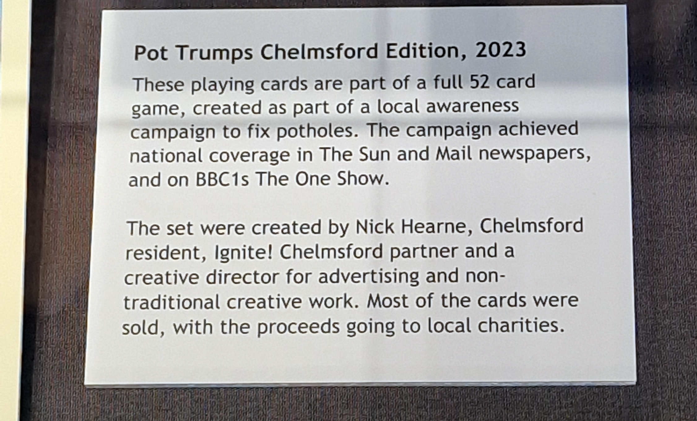 The original Chelmsford set was auctioned to raise funds for the local Food Bank. The remaining cards were donated to Chelmsford Museum for future generations to enjoy.
