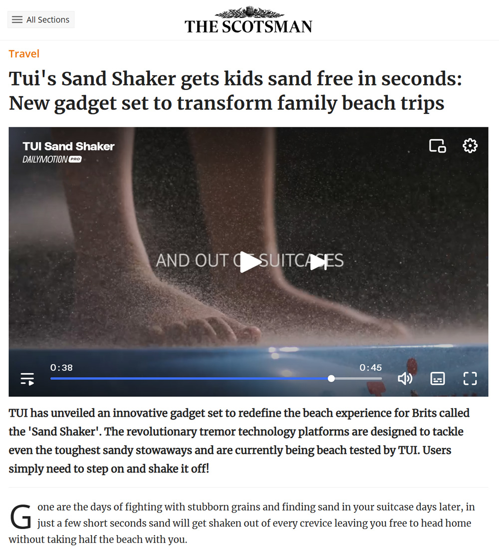 TUI invented the ‘Sand Shaker’ a fun tremoring platform that shook loose sand off kids in seconds to keep the beach on the beach!