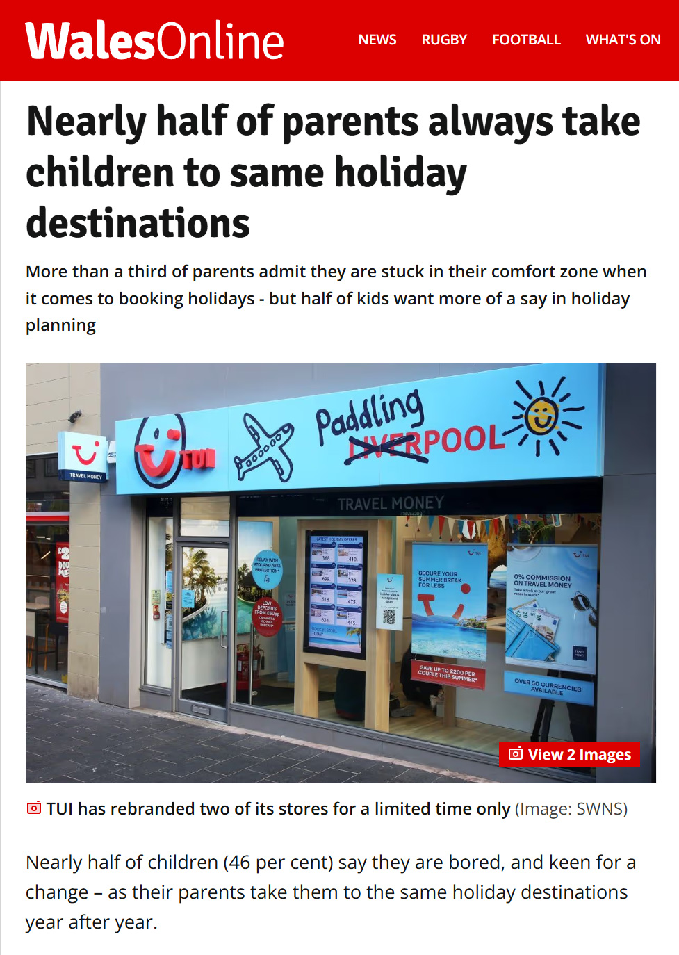 Earned media and PR work for TUI.